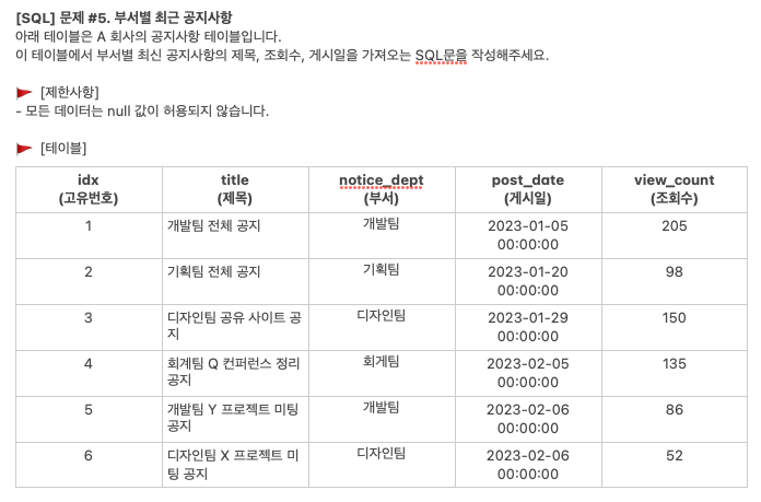 [SQL]부서별 최근 공지사항 본문