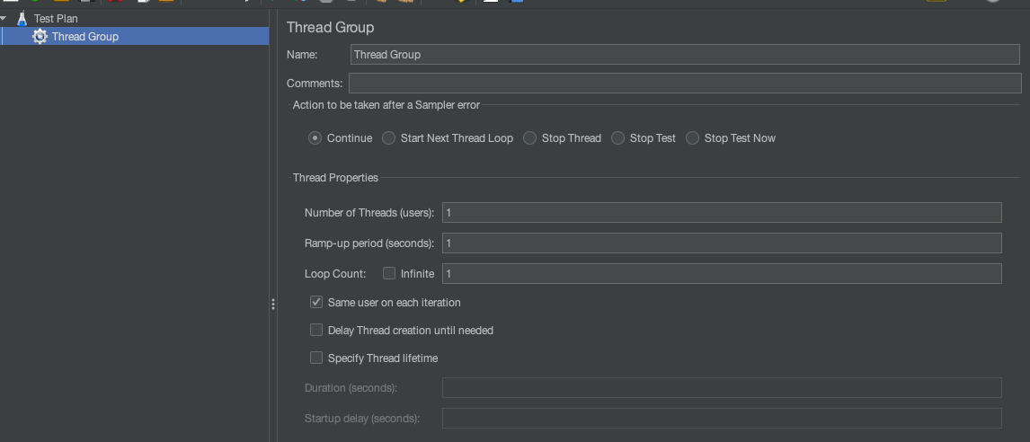 우선 테스트 플렌에서 Thread Group을 생성.